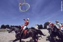 Consiste en un juego que enfrenta a dos equipos de seis jugadores (cuatro en pista y dos reservas) que portando un balón con seis asas de cuero deben conseguir el mayor número de goles en las canastas verticales del equipo contrario. Todo ello con intervención de al menos tres jugadores del equipo atacante en cada jugada y con la espectacular recogida de la pelota del suelo sin desmontar del caballo, estando unidos los estribos por debajo del caballo con una cincha. Los equipos son mixtos y el juego se desarrolla en una pista de 60 x 30 con dos zonas de seguridad separadas por dos cilindros inflables. |